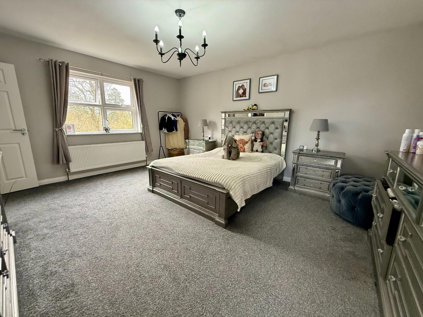 Spacious rear-aspect double bedroom offering generous proportions, complete with ample wardrobe space. The room benefits from carpet flooring, TV and electrical points, and direct access to a private en-suite.