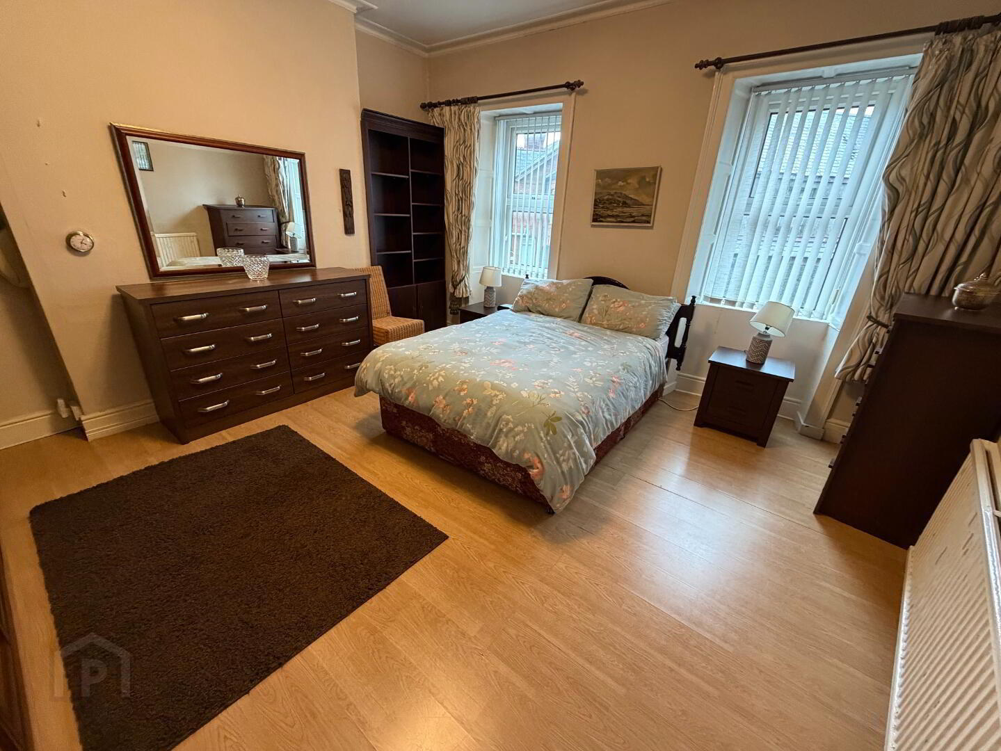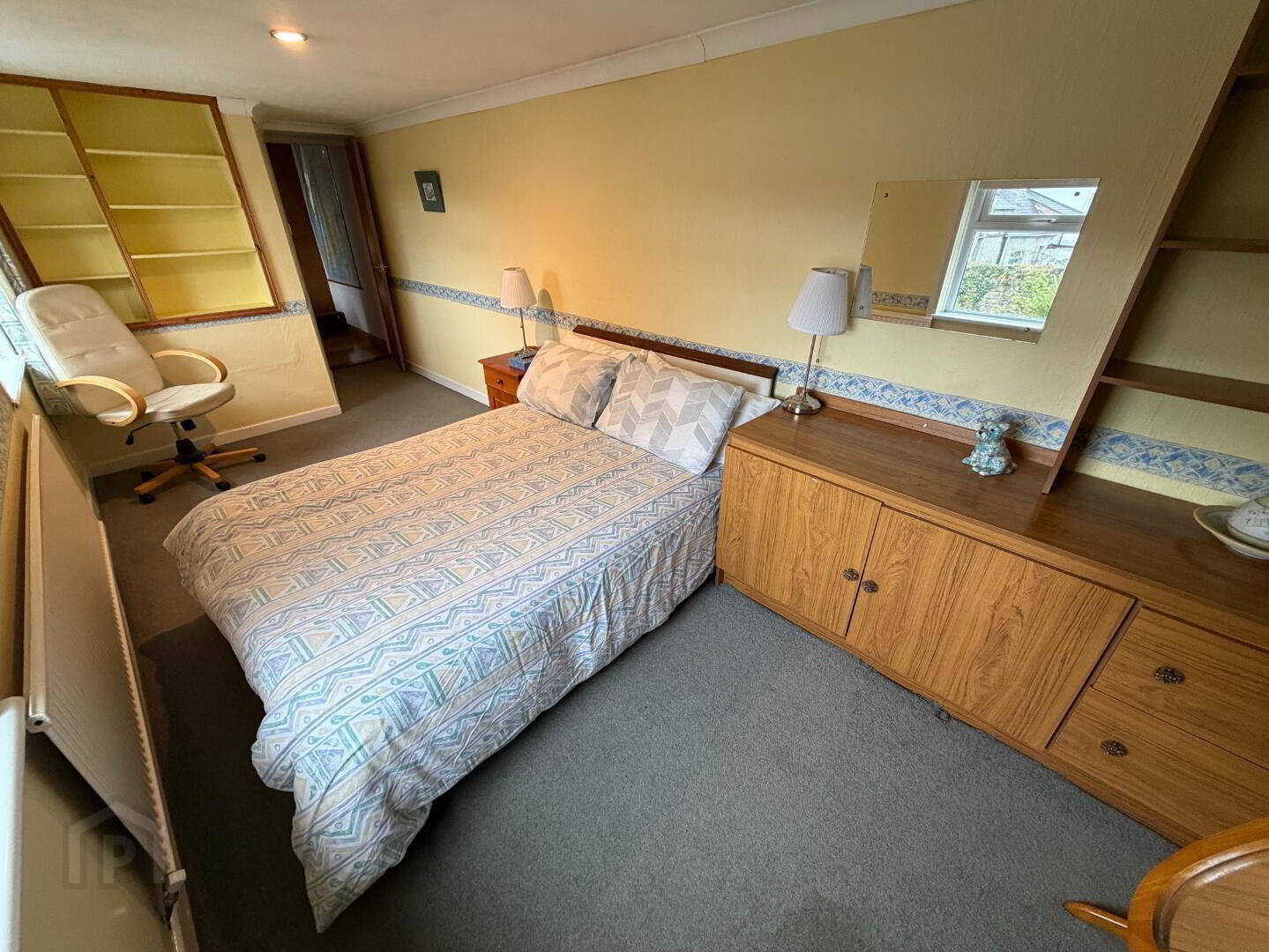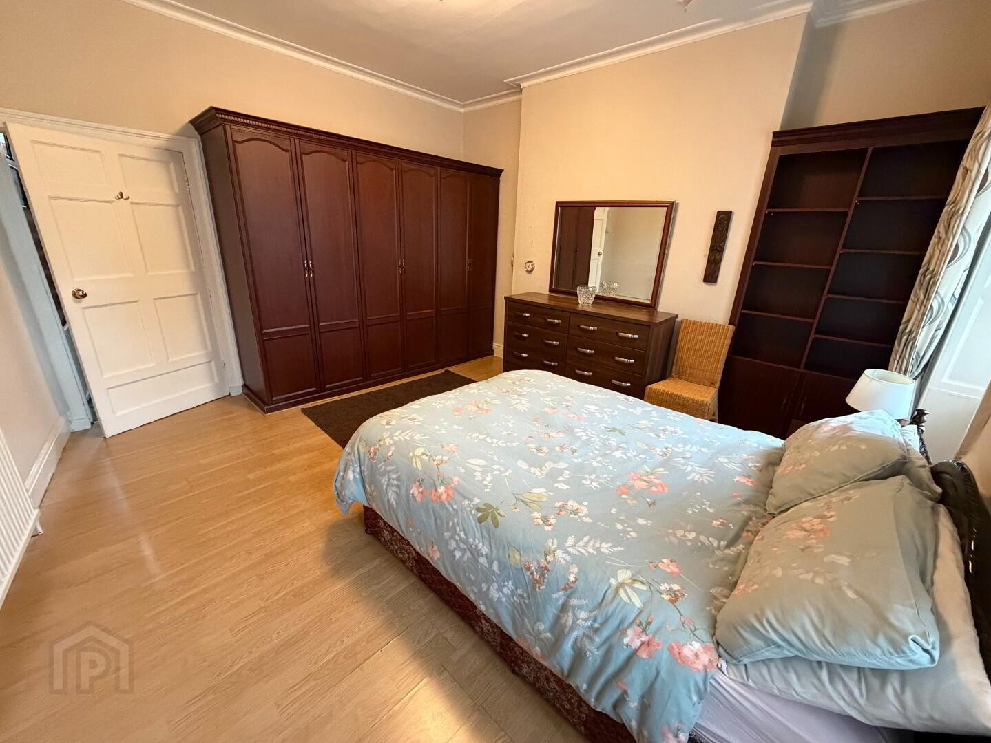 Spacious first-floor double bedroom with built-in wardrobe space and multiple electrical points, offering both comfort and practicality.