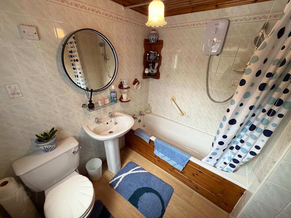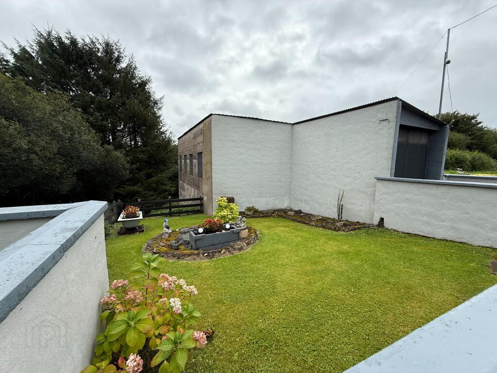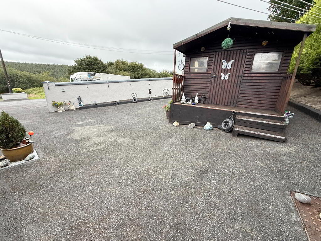 The property benefits from a large private side and rear yard, fully fenced and lined with mature trees for added privacy and security. A wooden shed and a concrete shed provide excellent storage, with the concrete shed/coal house also housing the electric generator fitting. Outdoor lighting and an external water supply add further convenience and the oil tank is also located within this secured tarmaced area.